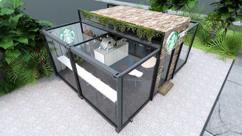 This unique coffee shop crafted from repurposed shipping containers, blending industrial chic with modern design.Featuring large glass panels and vibrant murals, the hub is both inviting and stylish.